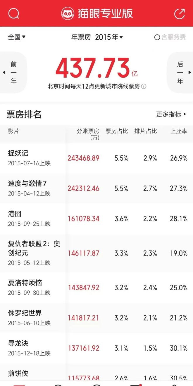我去查了下最近几年内地的电影票房数据,也发现大趋势是在逐渐走低的。