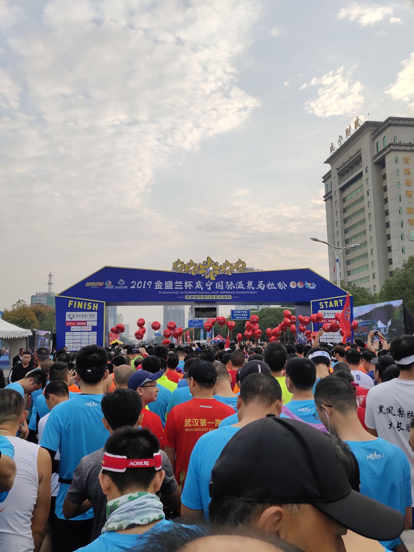 高百结束之后,感觉大腿稍微有点拉伤,所以稍微歇跑了几天,接着就出差去了,没怎么跑,等回了武汉,咸宁马拉松已经要开始了,然而我这个月的跑量甚至只有往常训练时预计跑量的三分之一。甚至出差时候天天胡吃海塞,体重都从64KG回升到了66KG。可以说是准备的非常不充分,于是我就这样迎来了我人生的第一次全程马拉松。