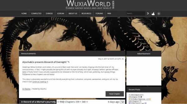 在中国网文翻译第一阵地武侠世界(Wuxiaworld),每天都会更新大量翻译作品,这些来自东方的神秘仙侠小说在国外读者面前徐徐展开。