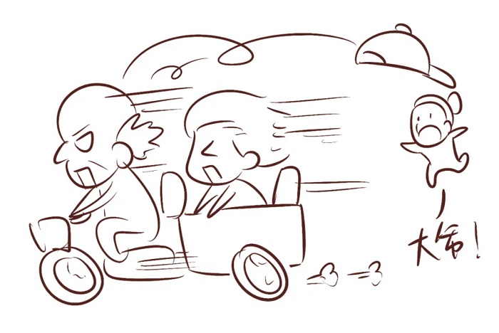 那时,我以为爷爷真有心脏病。二十年后,我第一次坐爷爷的电动小三轮。90多岁的他简直草原飞鹰,追风少年啊,颠得我根本坐不稳。他的速度连小轿车都赶不上,路上沟沟坎坎不带躲的,咔咔咔轧过去。街上的阿姨追在后面喊:“大爷,帽子!帽子掉了!”