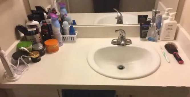 5、合租房里的两个租客,仅是洗漱台上的物品就展示出了两个人完全不同的个性。