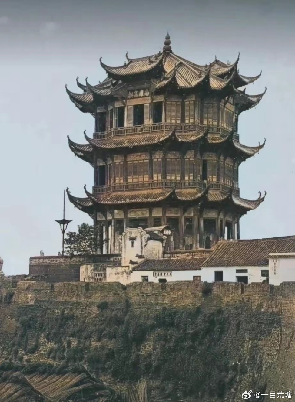 1880 年欧洲传教士拍摄的黄鹤楼,对比现在的黄鹤楼!