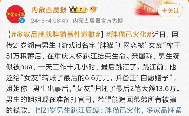 这次的“肥猫”,其实就是情感上太过依赖那个女孩,情绪完全被对方给控制了,就跟夺舍了似的,几乎别人要他干啥他干啥,甚至都没啥复杂的骗术或者话术。说真的,就我这些年的观察,妹子一般很少会喜欢这种男的。