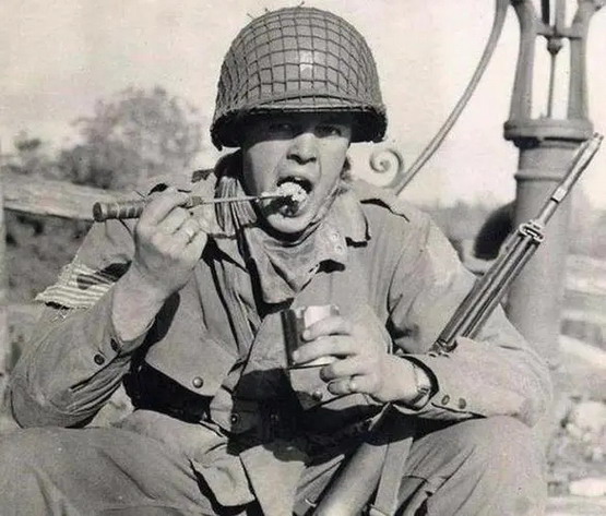 而当时,德军的口粮还是大麦面包和香肠,热量虽然够了,但种类贫乏。苏军口粮是加了木屑的黑面包,硬的可以当武器用。日军的口粮是饭团和味增汤,不但缺少热量,连数量还无法保证,经常是抢到什么吃什么,美军用来擦鞋的午餐肉,对他们来说几乎就是奢侈品。