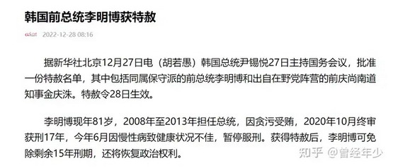 然后,文在寅特赦朴槿惠,尹锡悦特赦李明博。
