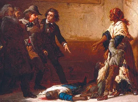 下图为美国历史上的著名杀女事件,出逃的女奴Peggy(真名Margaret Garner)被奴隶主抓住后,她为了不让自己的孩子当奴隶,愤然杀死了两个女儿,她不久也患病而死。后人为了纪念她,创作了很多艺术作品。