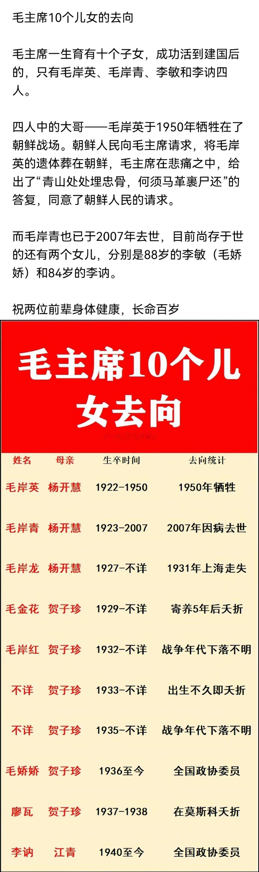 毛主席十个子女