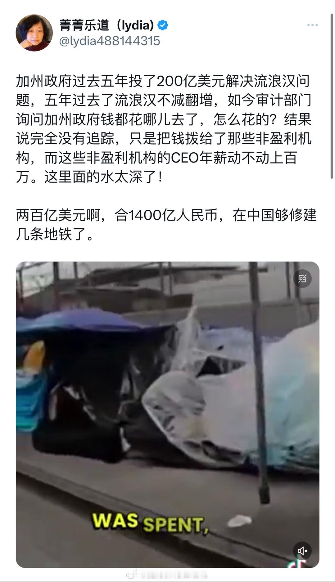 » 真把流浪汉问题解决了,他们就没钱挣了。