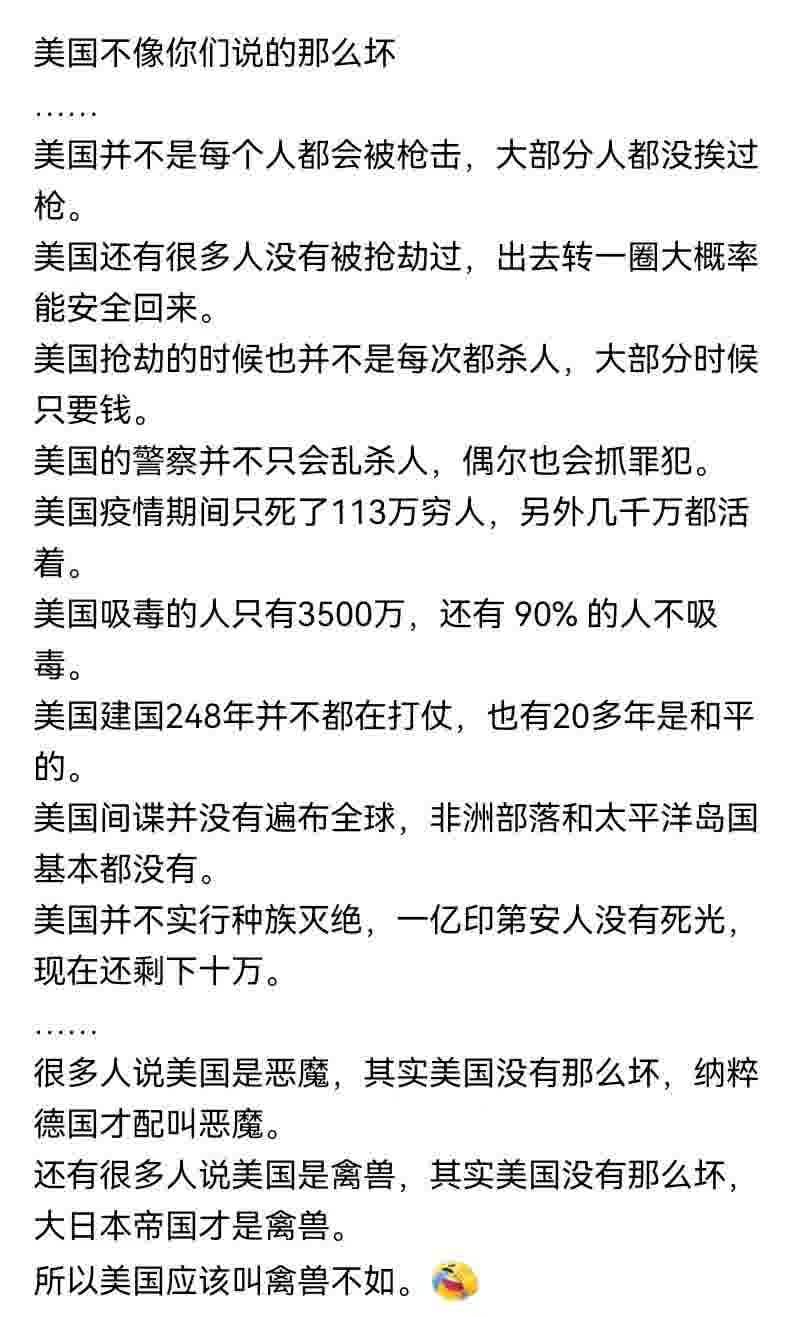 “美国不像你们说的那么坏。”