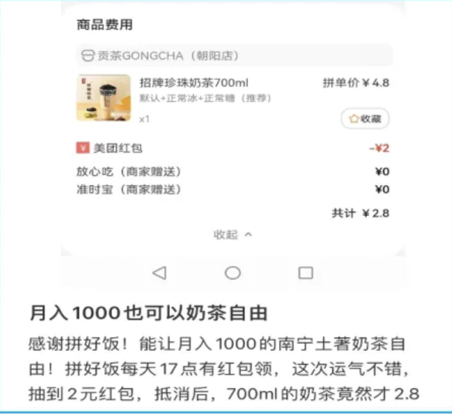看看美团的拼好饭吧,买一个汉堡外加一瓶可乐只需要: