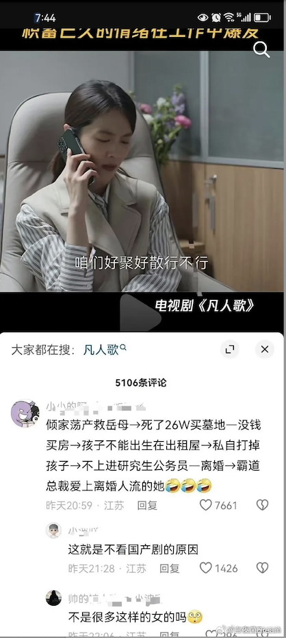 这两天很多人在批评国产剧凡人歌的价值观