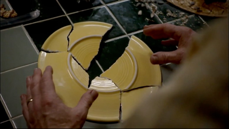 可就在老白把喝完的啤酒易拉罐扔进垃圾桶的时候,他发现了打碎的盘子。他多了个心眼,他把盘子的碎片一块一块拼起来,发现少了一块长条形的碎片。