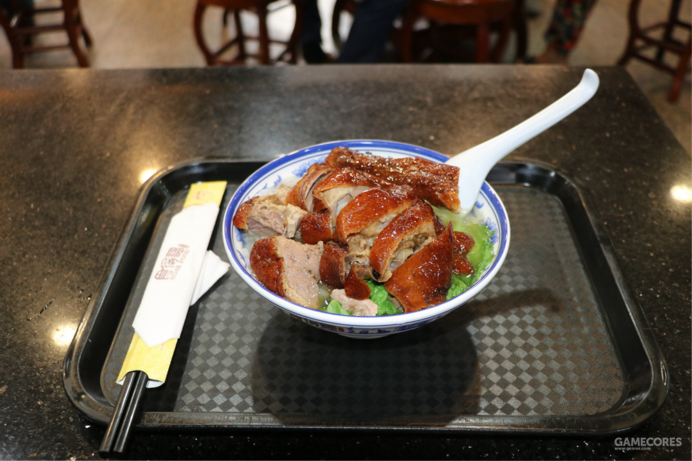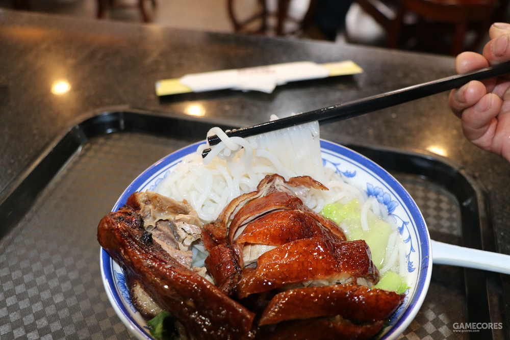 吃烤鹅时,也有不少讲究。有些挑剔的食客,会要求店家划开鹅腿与鹅下端的部位,用这里的鲜汁入汤提味,再配上鹅下端与鹅脊骨,算是烧鹅濑粉的终极形态吧?据波仕介绍,鹅下端因为离酱料较近,烘烤时入味浓郁。而整只在鹅烘烤时,油汁顺着脊骨而下,咬烂脊骨后,卤香、油香以及鹅的鲜味会一齐爆出。这个组合作为早餐可能有些油腻,但在中午或傍晚来上一碗,对于喜好美食的人来说不失为一种绝妙的享受。