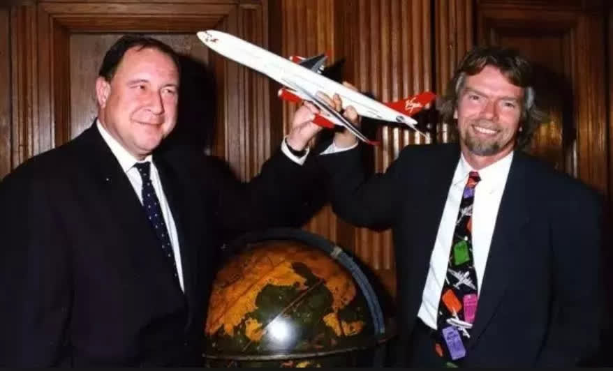 皮埃尔松(左)和维珍航空创始人理查德·布兰森,1994年