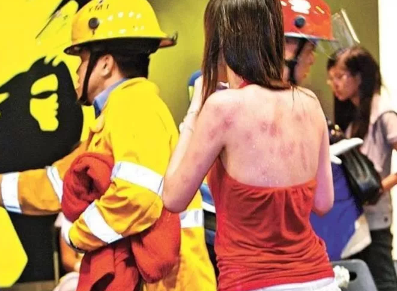 “咳咳……我当时在卖东西,只觉得有人从空中泼了什么东西下来,开始我以为是水,可是这东西沾到身上后火辣辣的,我感觉自己的身体像着火了似的,疼得不行,当时就倒在地上来回翻滚。后面的过程我都记不太清了,一直到救护车把我送到医院。”女人说话声音很小,嗓子还有些沙哑,我贴得很近才能听清。