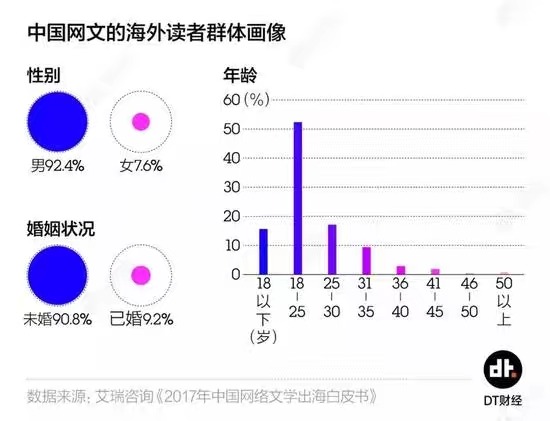 结果可以用一句话概括:译制网文的读者大多是来自于欧美地区,年龄在18-25岁之间的单身男性。