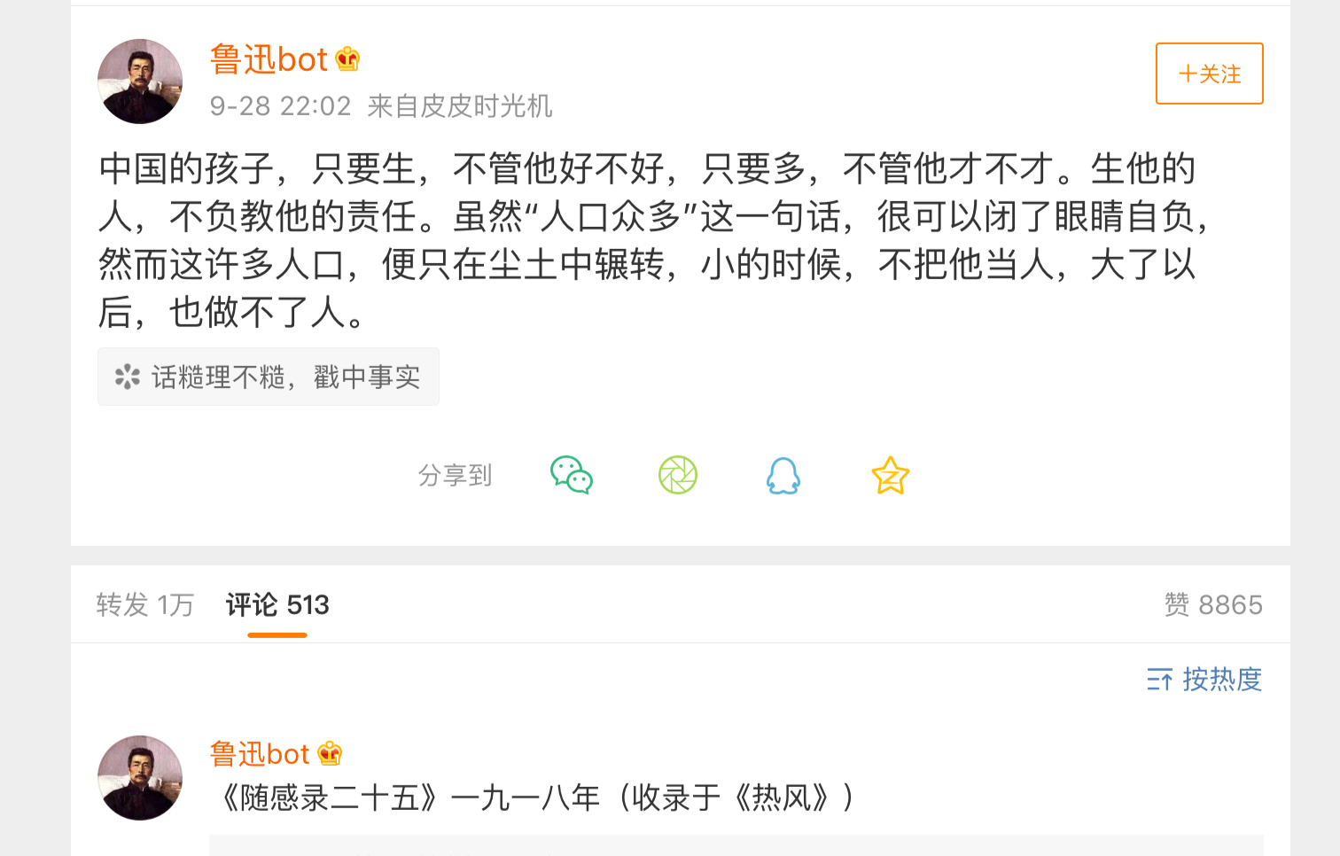 不知不觉100年了,鲁迅先生威武!