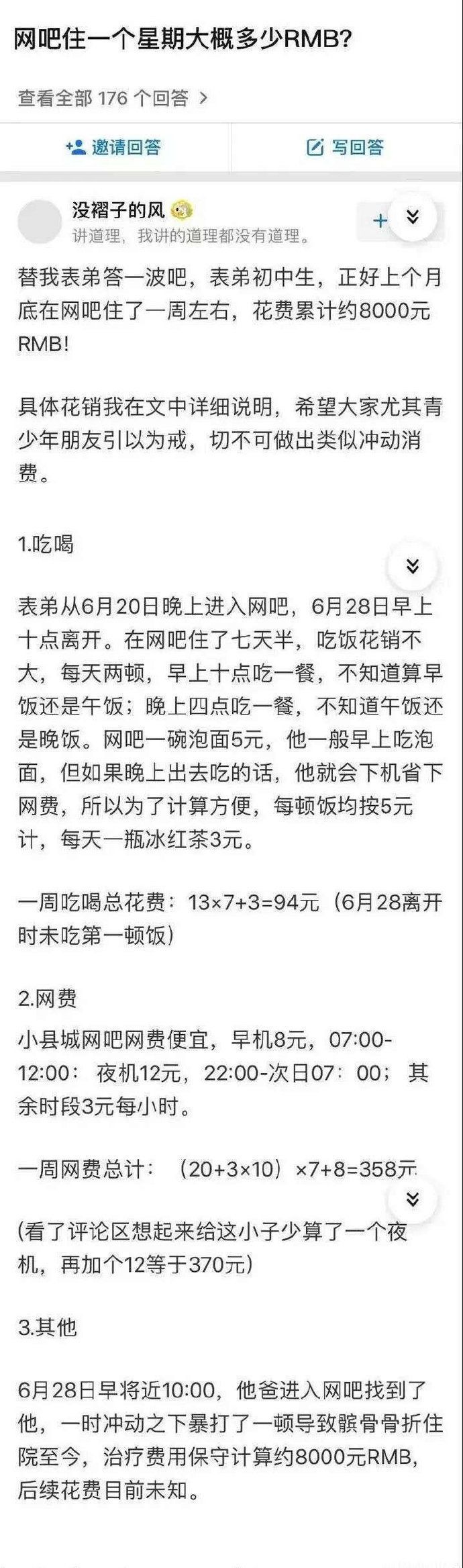 在网吧住一个星期需要多少钱?