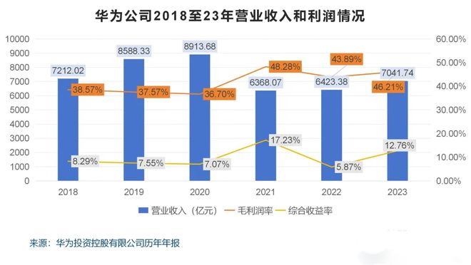 2023.年华为实现全球销售收入.7042.亿元,同比增长.9.63%,创.2019.年以来最大年度增幅;净利润.870.亿元,同比增长.144.5%。