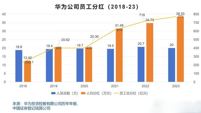 比如华为.2008.年营收首次.1000.亿,按照.18%.的锁定比例,就是.180.亿人民币的总包,全球员工.9.万人,.人均.20W,2019.年华为营收.8963.亿,薪酬总包.1700.亿,全球员工.18.万人,人均薪资.90W,十一年的时间人均收入翻了四倍。