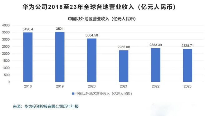 2023.年,华为在中国以外地区营业收入仅为.2328.71.亿元,比上年下降了.2.29%。