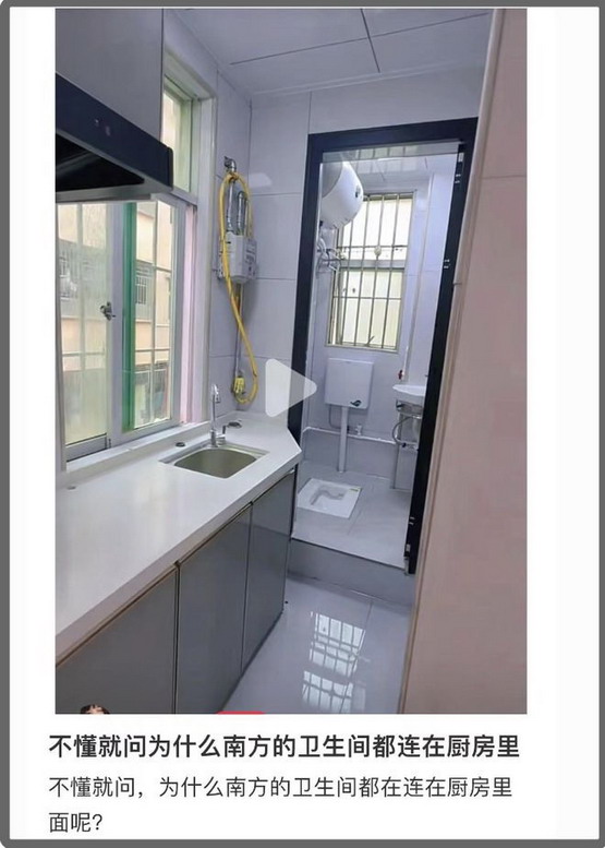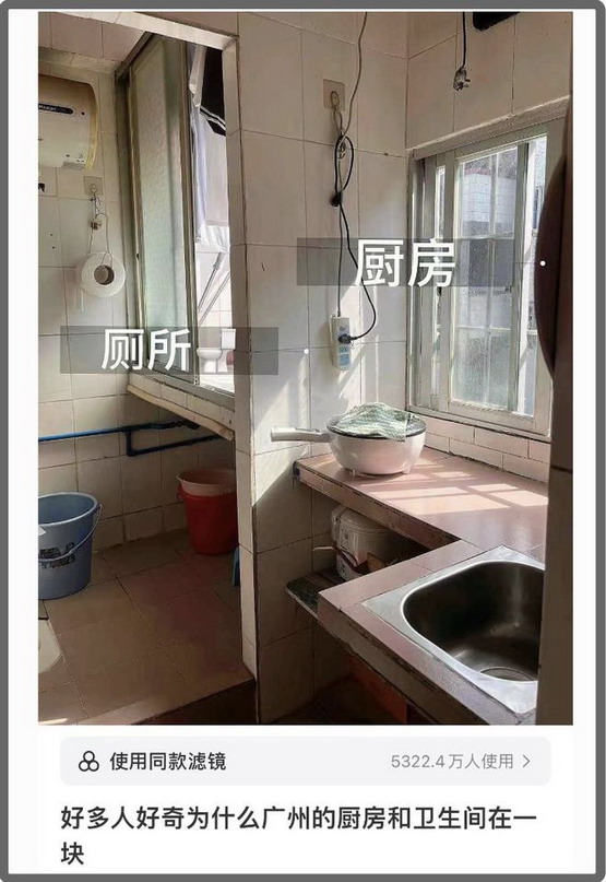 想起在小红书上曾经盛行一时的抽风先驱设计师亡姨,提出过在马桶上炒菜的伟大构想,然而广东出租屋厨厕一体的脑洞早已领先小红书几十年。