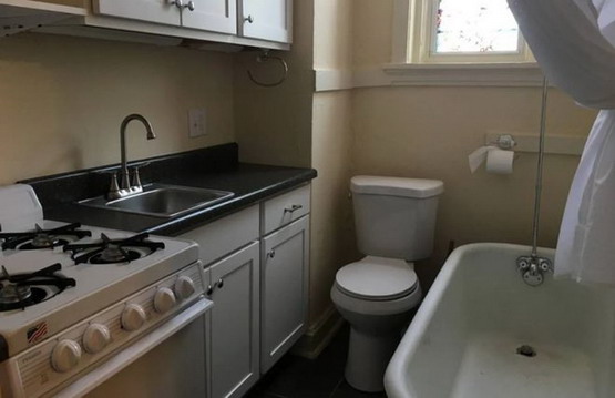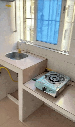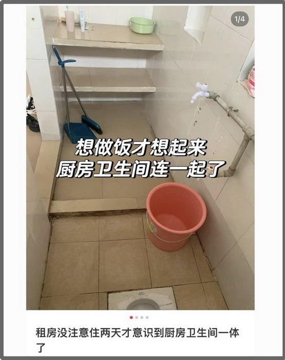 有的厕所和厨房之间只是简易间隔,甚至没有封顶,一看就是房东贴心地非要给你在厕所里隔出个厨房的神来之笔。