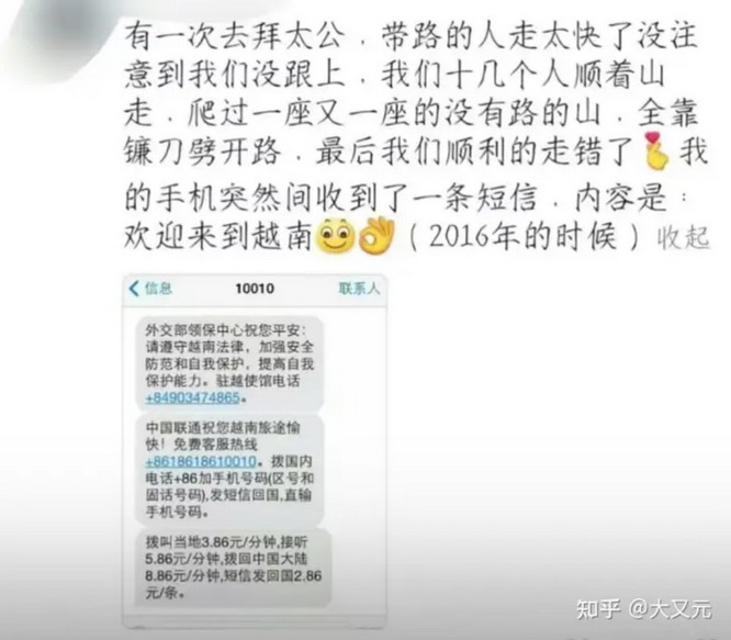 寻找太公的路大概实在太崎岖,有广西的小伙伴提刀开路连翻数山,突然手机收到了一条来自外交部的短信:祝您越南旅途愉快,入乡随俗,请遵守当地法律。