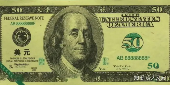 针对这一需求,好消息是:米北庄接到了订单,并大量增发美元,可坏消息是每张美元上都有汉字,且发行单位行长玉皇,副行长阎罗王~