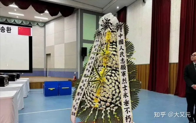 在韩国仁川的交接现场,大使馆送上的挽联,多年来一直用的是繁体字,因为今天我们熟悉的简体汉字是在1956年才开始推行,怕牺牲的烈士英魂不知道是家人来接他们回家,所以特地坚持着这个细节。