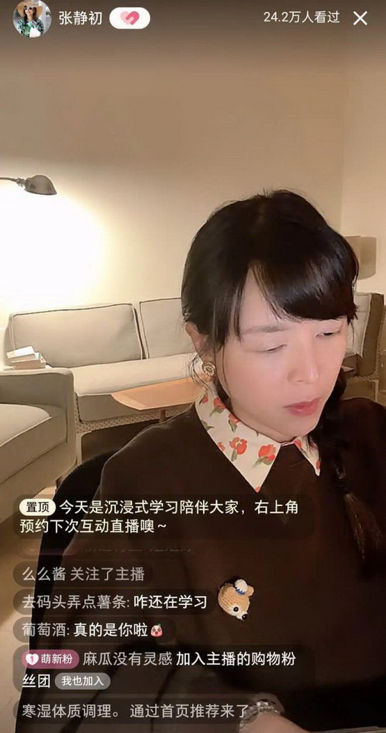 张静初直播带货的频率绝对不算频繁,一年的直播带货次数一个手都数得过来。