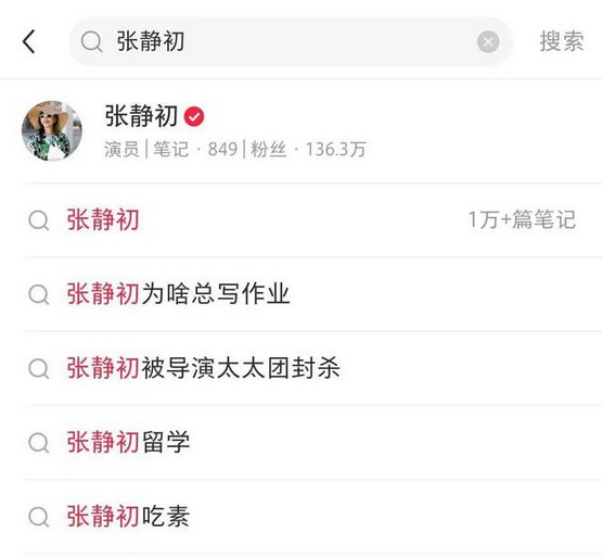 现在搜张静初,出来的联想词汇是.“张静初为啥总写作业”。