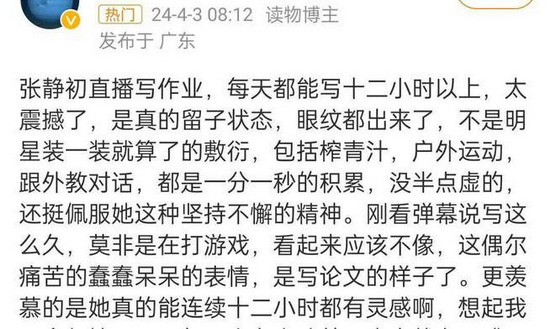 学生党还没起床,张静初就已经坐那开始写了,打工人已经睡下,姐还在一边挠头一边奋笔疾书呢。