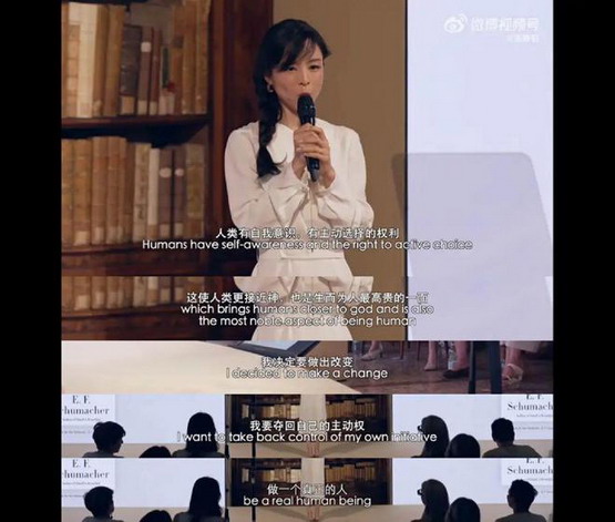 ?张静初在英文演讲中谈.E.F..舒马赫《解惑》带给她的影响