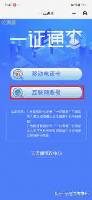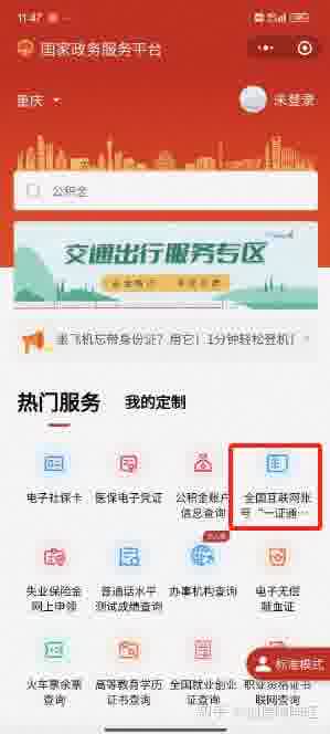 1、在微信搜索栏输入 “国家政务服务平台”,进入国家政务服务平台后点击 “全国互联网账号 “一证通查””