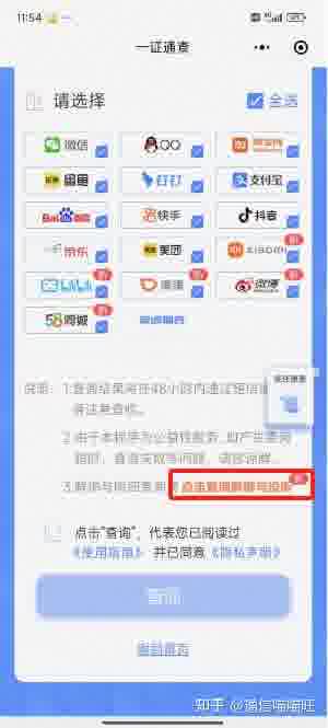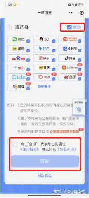 4、点击全选 –> 勾选 “代表您已阅读过”–> 查询,弹出提交窗口,点击提交即可,查询结果将在 48 小时内通过短信通知,请注意查收。