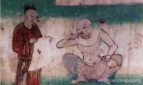 古人对牙齿保健一向很重视。在敦煌壁画里,有一幅“劳度叉斗圣图”,画的是一个和正尚蹲在地上,左手执水瓶漱口,右手伸出中指,在门牙上揩拭——这是牙刷发明之前的标准刷牙方式。古人还学会了以柳枝蘸盐刷牙,以苦参汤漱口,用齿木当剔牙缝,甚至还开发出一种牙膏。南梁刘峻所著《类苑》中有个方子,叫做《西岳华山峰碑载口齿乌髭歌》,用皂角、荷叶、地黄、升麻、旱莲草、青盐熬成药末,往牙上擦,可以达到“揩齿牢牙”的功效。