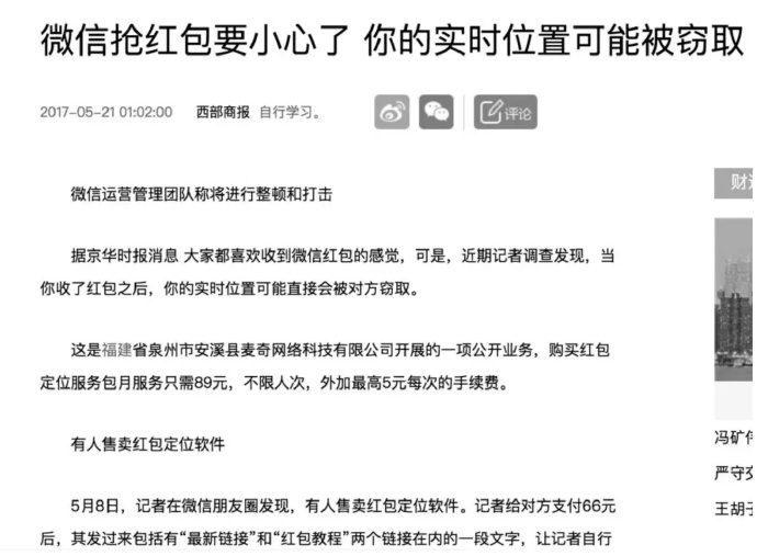 这个红包能干嘛呢,你点开这个红包,会弹出一个选项,问你是否接受红包并同意使用定位服务,只要你选择接受红包,对方就能定位你的位置,误差不超过10米。
