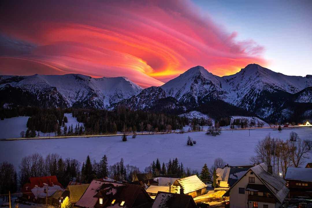 喀尔巴阡山脉塔特拉山脉(Tatra Moutain)出现的火烧荚状云