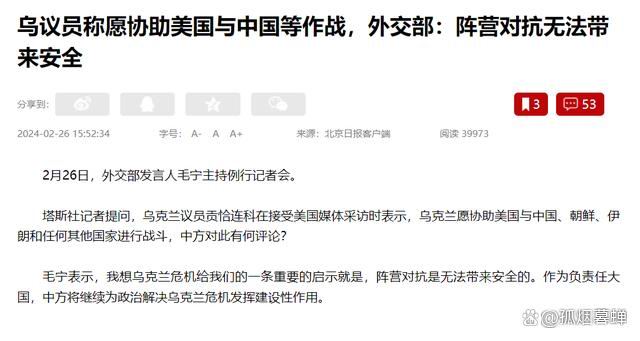值得一提的是,在2月26日这天,俄塔社的记者还引用了贡恰连科的这番发言,跑到咱们当天举行的例行记者会上来询问我们的意见: