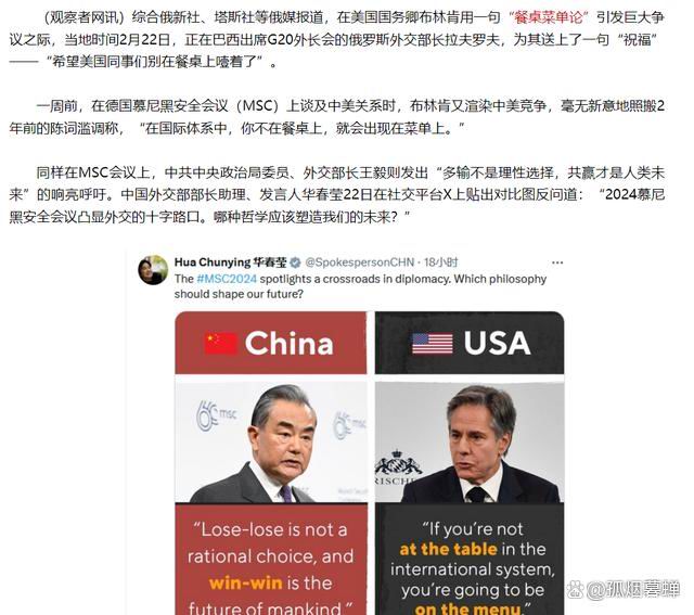 布林肯在慕尼黑安全会议上的那话是怎么说的来着?在美国看来,当今国际体系中的国家只有两种,“要么是上桌吃饭的,要么就是上菜单被人吃的。”