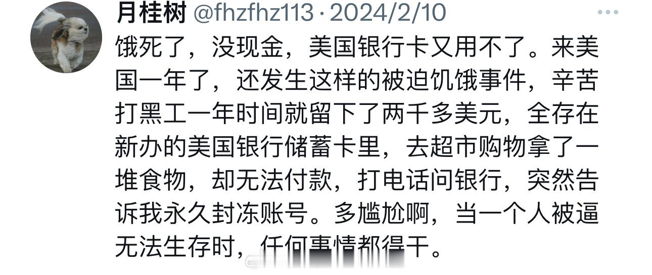 24年的他:银行卡莫名其妙被封了,钱也取不出来,没有钱吃饭了,说快要饿死了,他吐槽没有任何申诉渠道,根本没有人权!