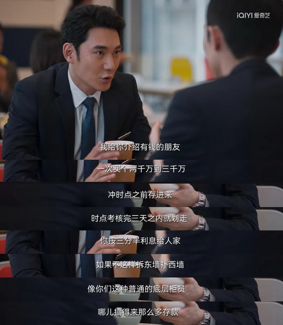 里面有一段 —— 银行柜员有拉存款任务,完不成目标会影响饭碗。