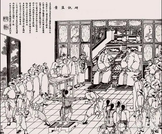 图为《点石斋画报》中清代审案时的场景