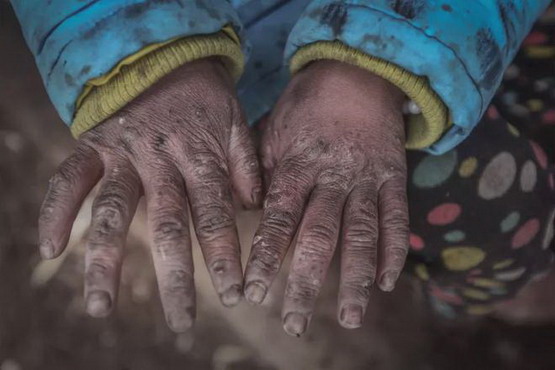 他和同学们的小小手,都经历了生活和严寒的折磨,就变成这个样。