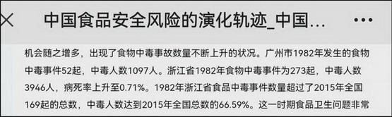 2022.年,江南大学的两位研究者在《中国食品安全风险的演化轨迹》一文里指出: