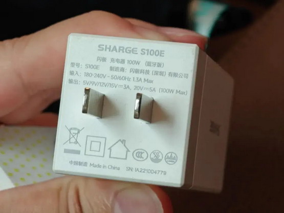 比如我手头这个闪极.100W.充电头米家蓝牙版.,因为蓝牙芯片的电压适应比较复杂,所以这颗充电头的适用功率就调整到了.180V-240V.。