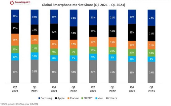 而且好巧不巧,这二位偏偏是世界上智能手机市场占有率前二的品牌,俩牌子加一起占了全球.43%.的份额。。。