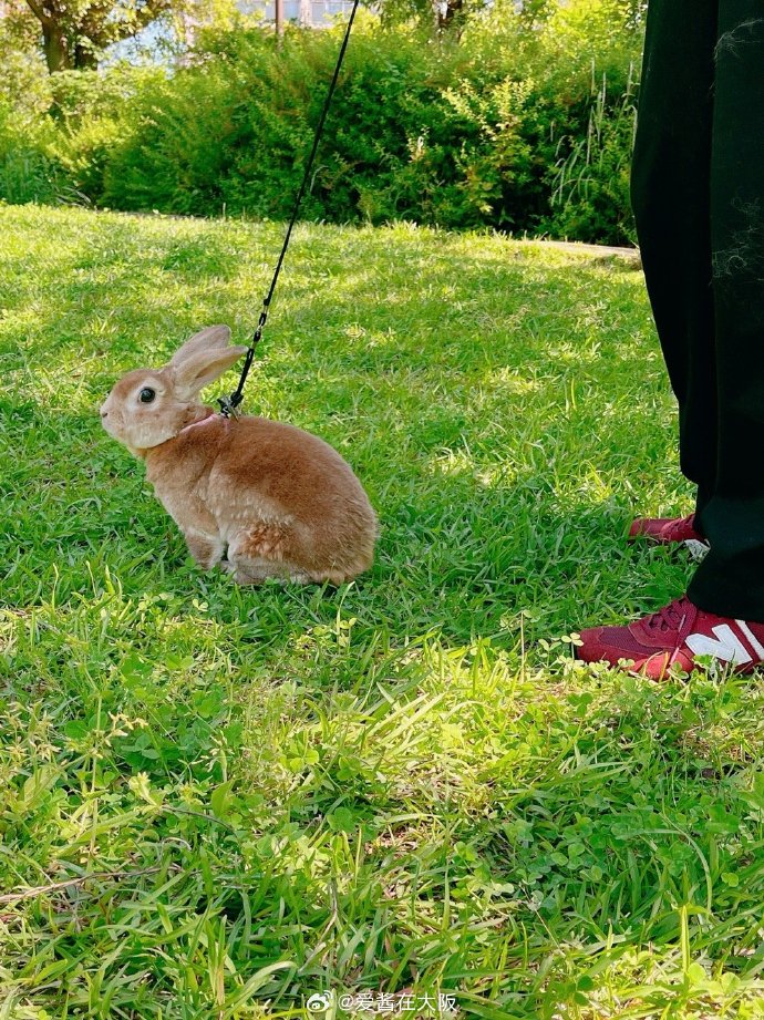 @爱酱在大阪:前几天天气不错的时候,我俩也带桐生出去散步了。桐生在换毛期,身上坑坑洼洼怪难看的,我俩就把兔子抱到桌子上梳了一会儿毛。