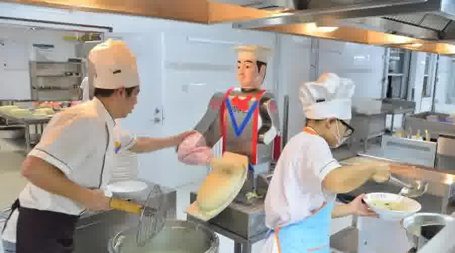 我对机器人做饭的印象,还停留在食堂里的那个刀削面机器人。